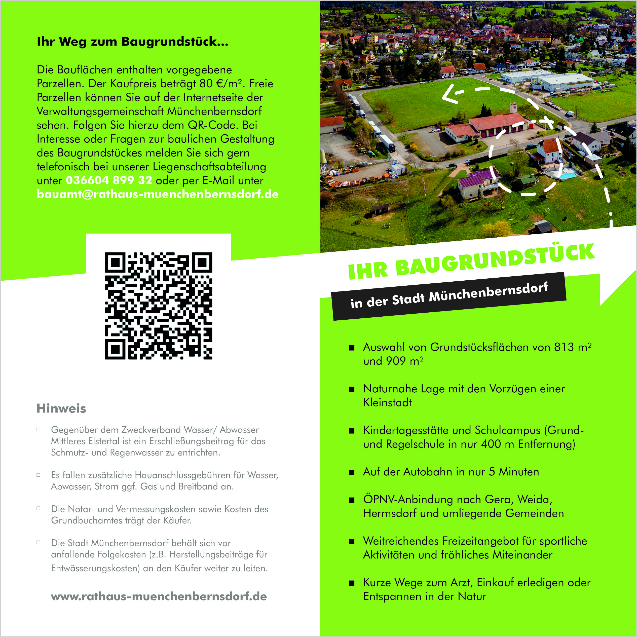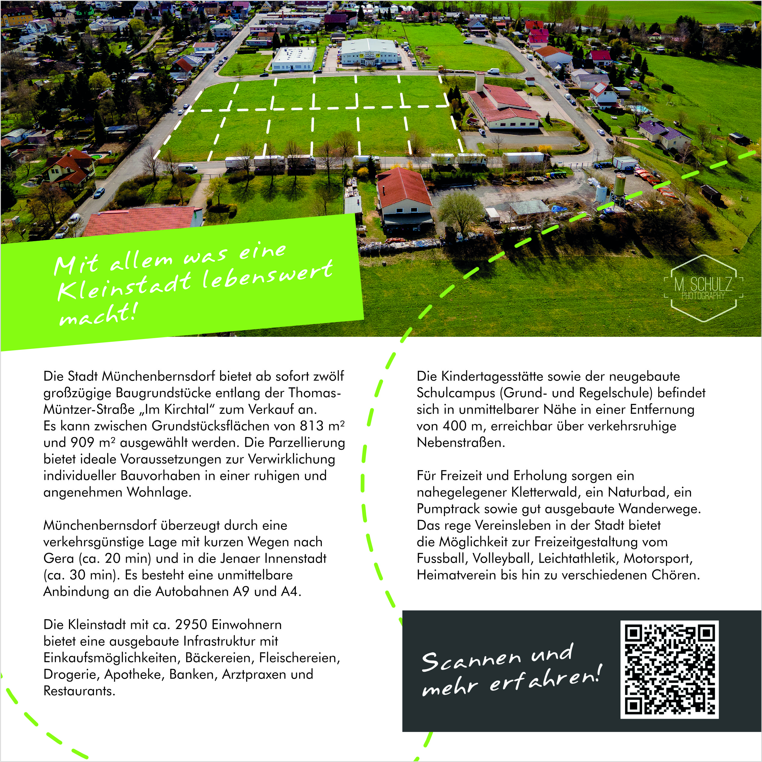 Die Stadt Münchenbernsdorf bietet ab sofort zwölf großzügige Baugrundstücke entlang der Thomas-Müntzer-Straße "Im Kirchtal zum Verkauf an.