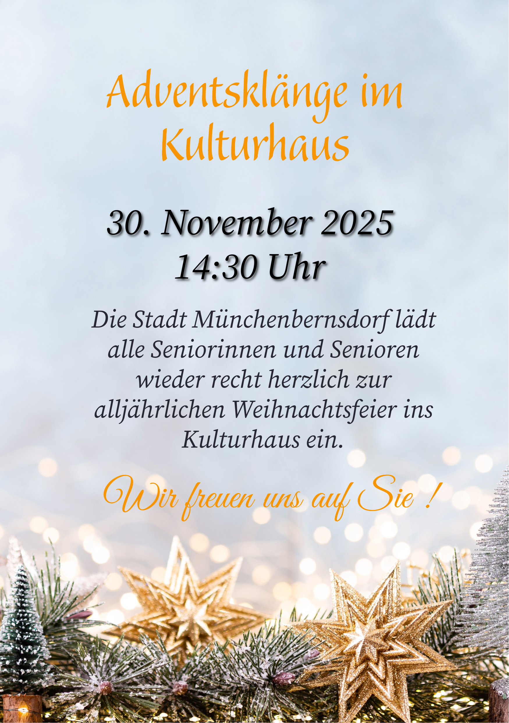 | Mitteilung | Adventsklänge im Kulturhaus 30.11.2025 |