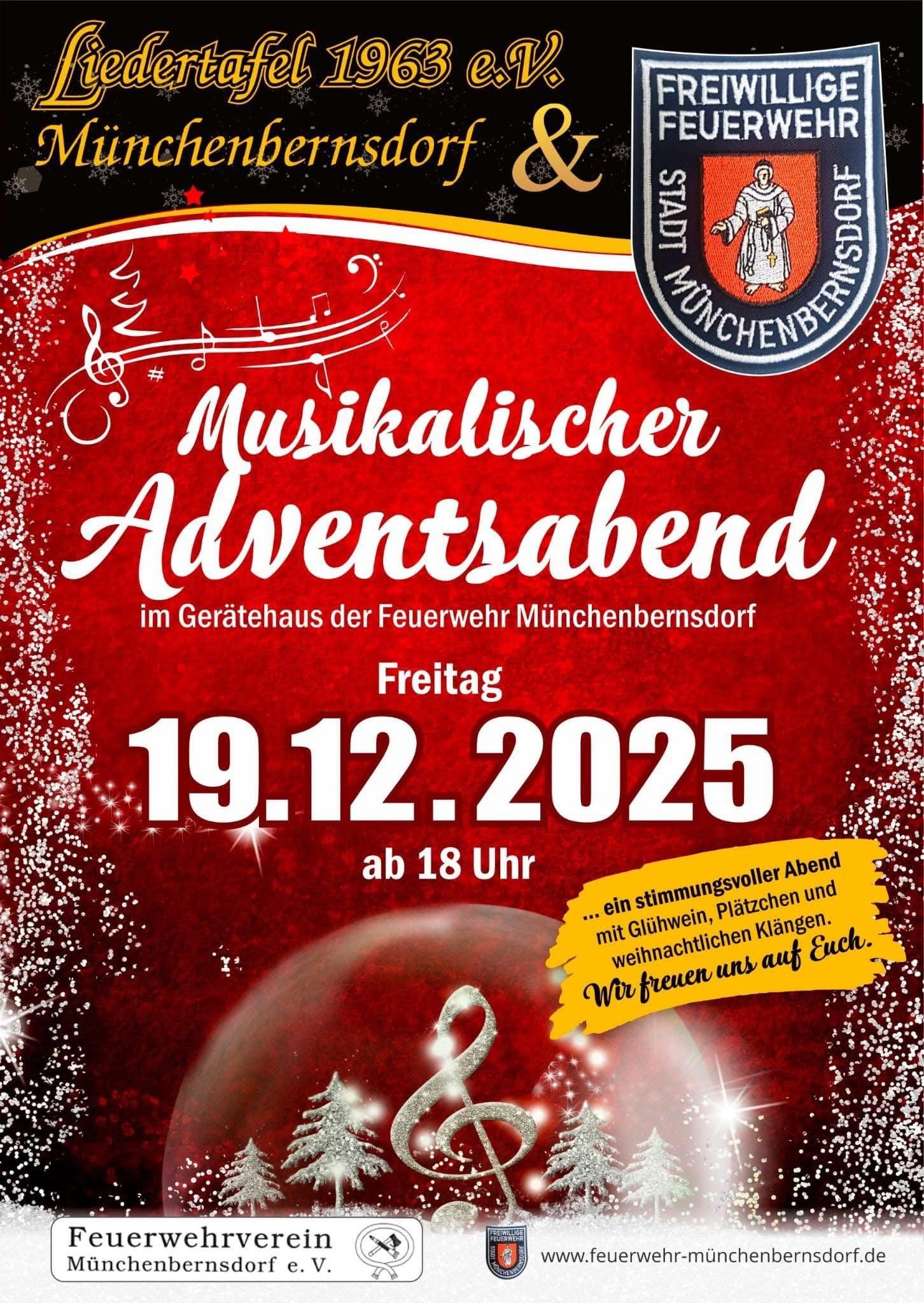 | Mitteilung | Musikalischer Adventsabend in der Feuerwehr Münchenbernsdorf am 19.12.2025 |